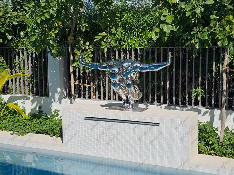 الصورتان التاليتان لتمثال الرجل الغواص من عملاء YouFine. من الولايات المتحدة الأمريكية ودبي. عملاؤنا راضون جدًا عن جودتنا. اختار عملاؤنا تركيب منحوتتين من الفولاذ المقاوم للصدأ لأحواض السباحة.